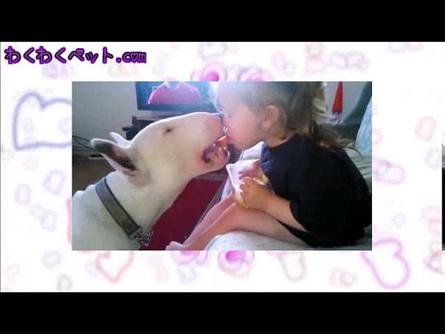 【犬 癒し かわいい】ブルテリアと赤ちゃんの超キュートで癒される動画 【わくわくペット.com】